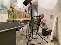 Herr Rade legte besonderen Wert auf viele Detailaufnahmen vom Liborischrein, die eigens von dem Bad Lippspringer Fotografen Ansgar